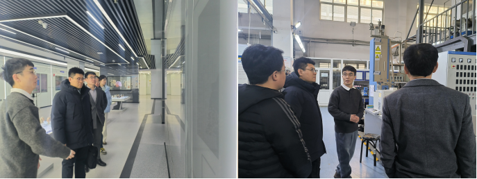 在yl23411永利网页版先进成形与智能装备研究院,研究院副研究员王振华带领永利yl23411集团老师们参观了金属复合材料成形实验室设备和环境。该研究院由黄庆学院士领衔,聚焦先进金属复合材料成形技术与装备领域的科技前沿问题及产学研合作开展研究取得了一系列显著成绩。该团队在板带轧制装备智能化设计与软件开发方面已获多项国内和国际专利。通过参观,老师们对于先进金属基复合材料的轧制技术、碳纤维缠绕装备有了初步认识。