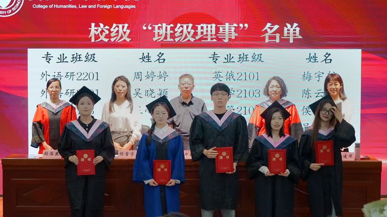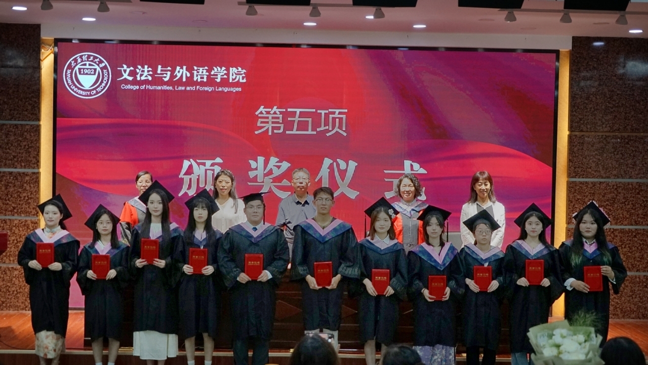 学院教授、分学位评定委员会委员为2025届获得学位的毕业生拨穗正冠、颁发学位证书并合影留念。