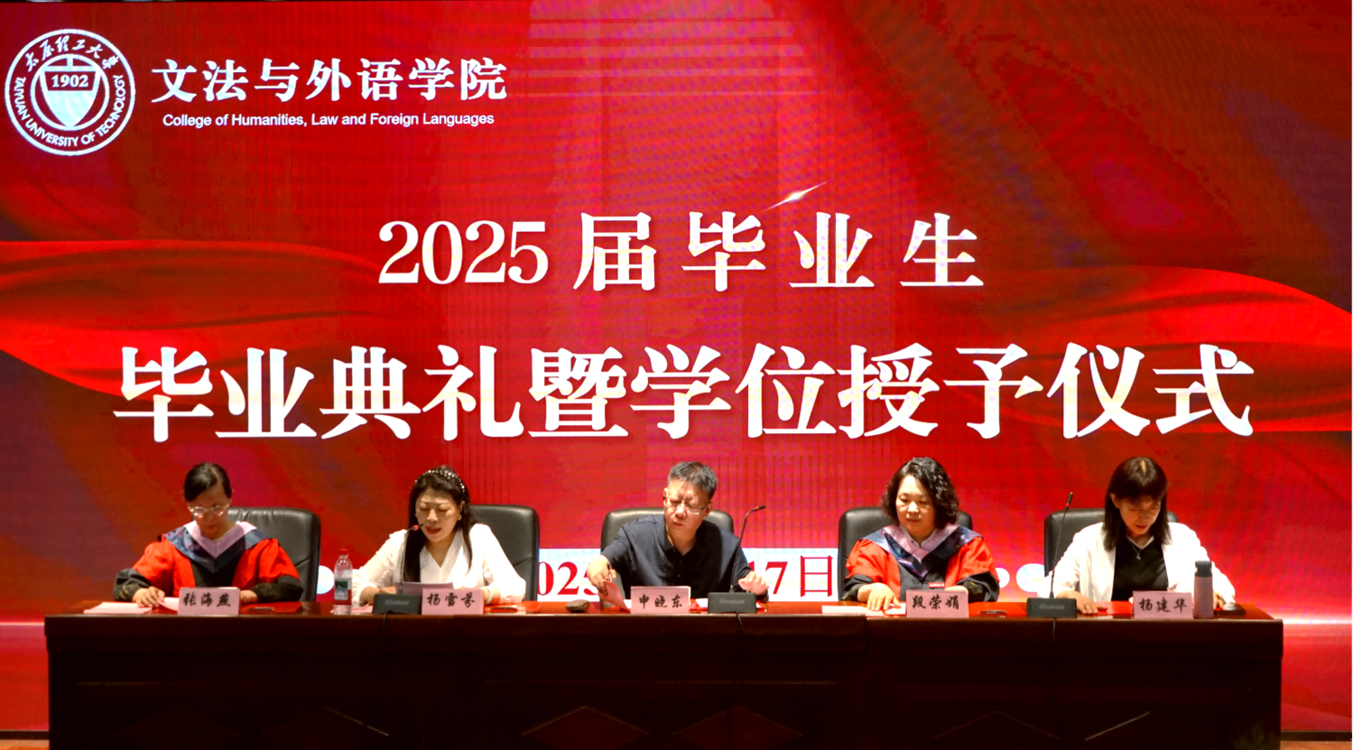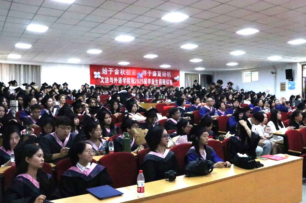 青春不散场,梦想正启航。6月17日,文法与外语学院在学院北楼一层报告厅隆重举行2025年毕业典礼暨学位授予仪式。学院党政领导及教师代表出席典礼。典礼由院党委副书记杨雪芬主持。