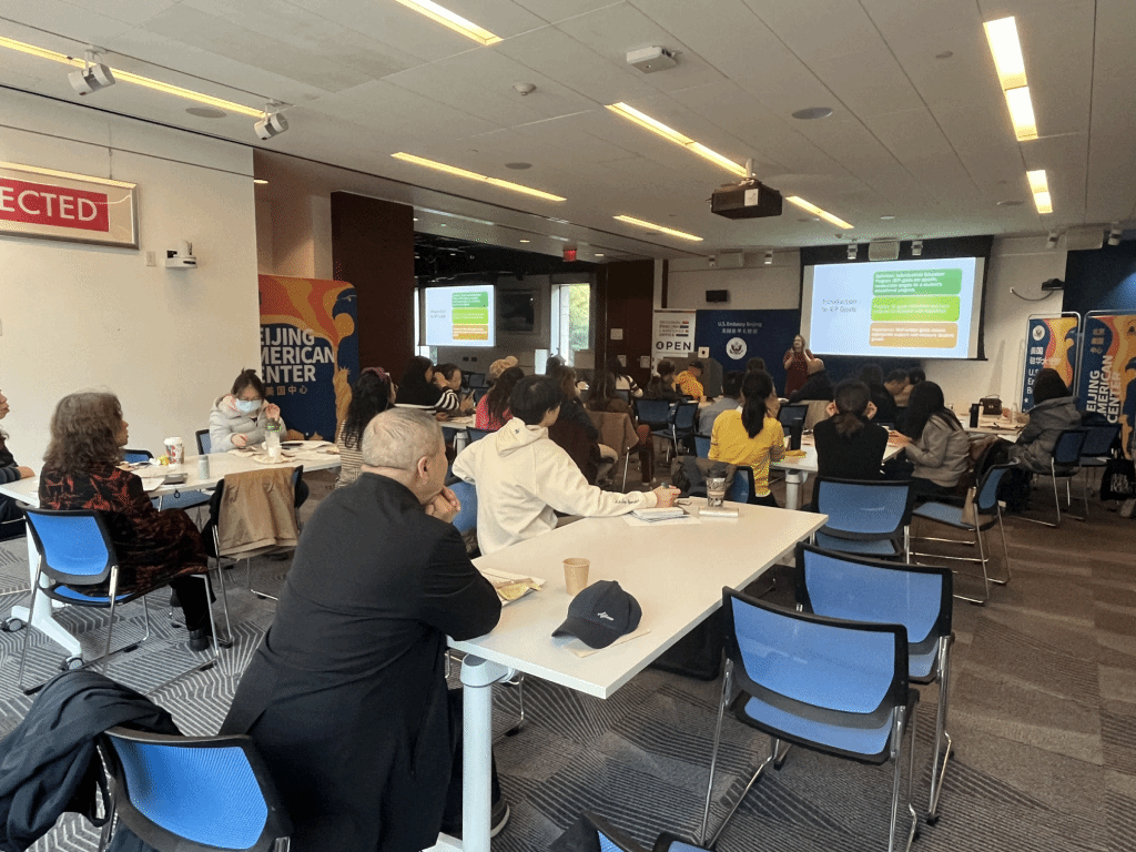 何竹芳老师出席参加北京美国文化中心地区英语项目办公室(RELO)举办的英语教学研讨会,学习了作为虚拟英语语言的研究员Dr. Terra Leigh Nicoll所做的美国虚拟教研室在创新教学模式方面的报告。